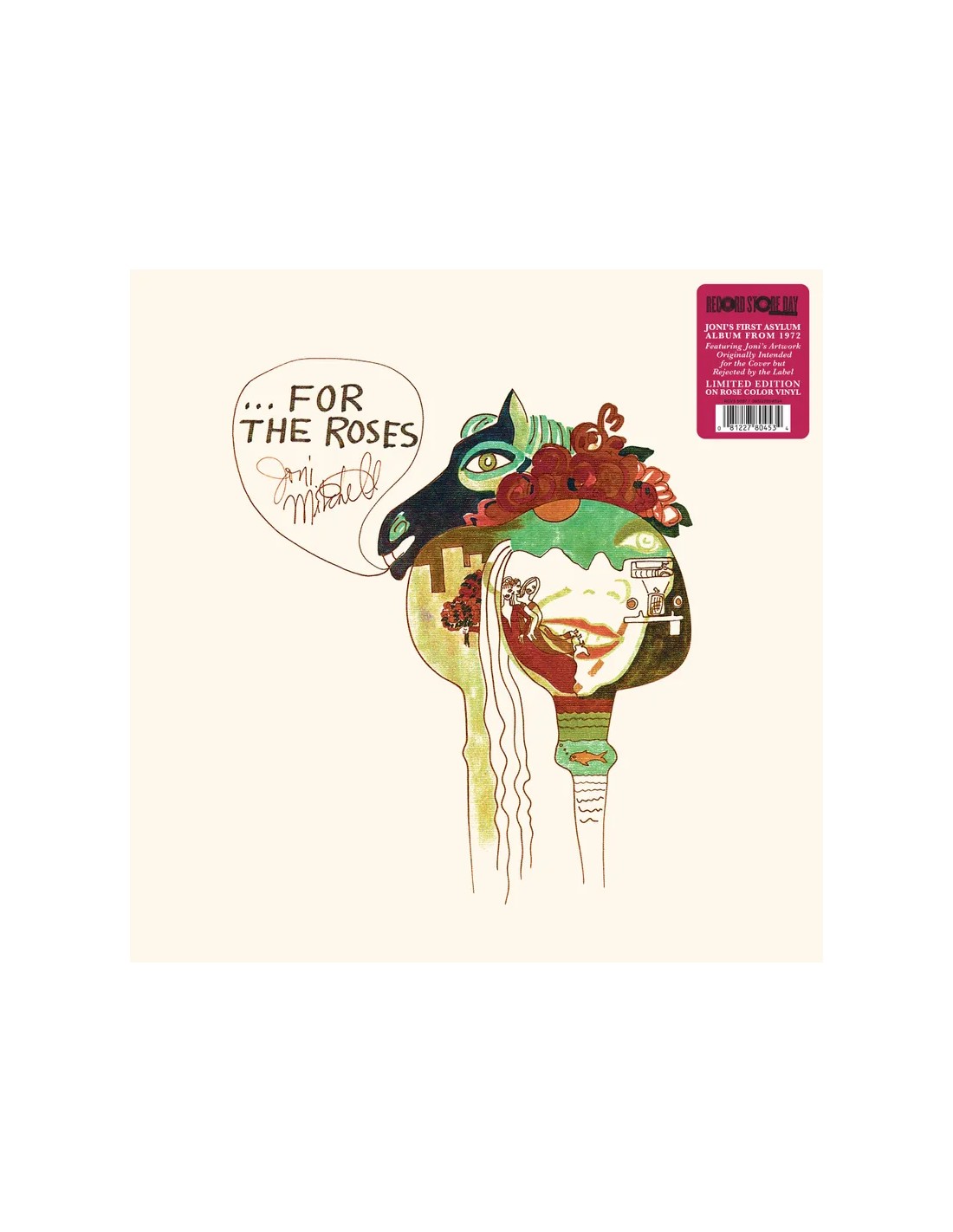 Joni's 1972 album, For The Roses, was her first for David Geffen's Asylum Records. Joni originally had intended the album cover to be art that she created that was illustrative of the song, "For The Roses," and showed her cynicism to the music business at the time. Geffen vetoed her artwork because he thought it was not a good look to have a horse with roses coming out of its ass! So, Joni ultimately compromised to use the Joel Bernstein photo that became the cover. This special limited edition for Record Store Day restores Joni's original vision for the cover artwork for the first time. Pressed on rose color vinyl.