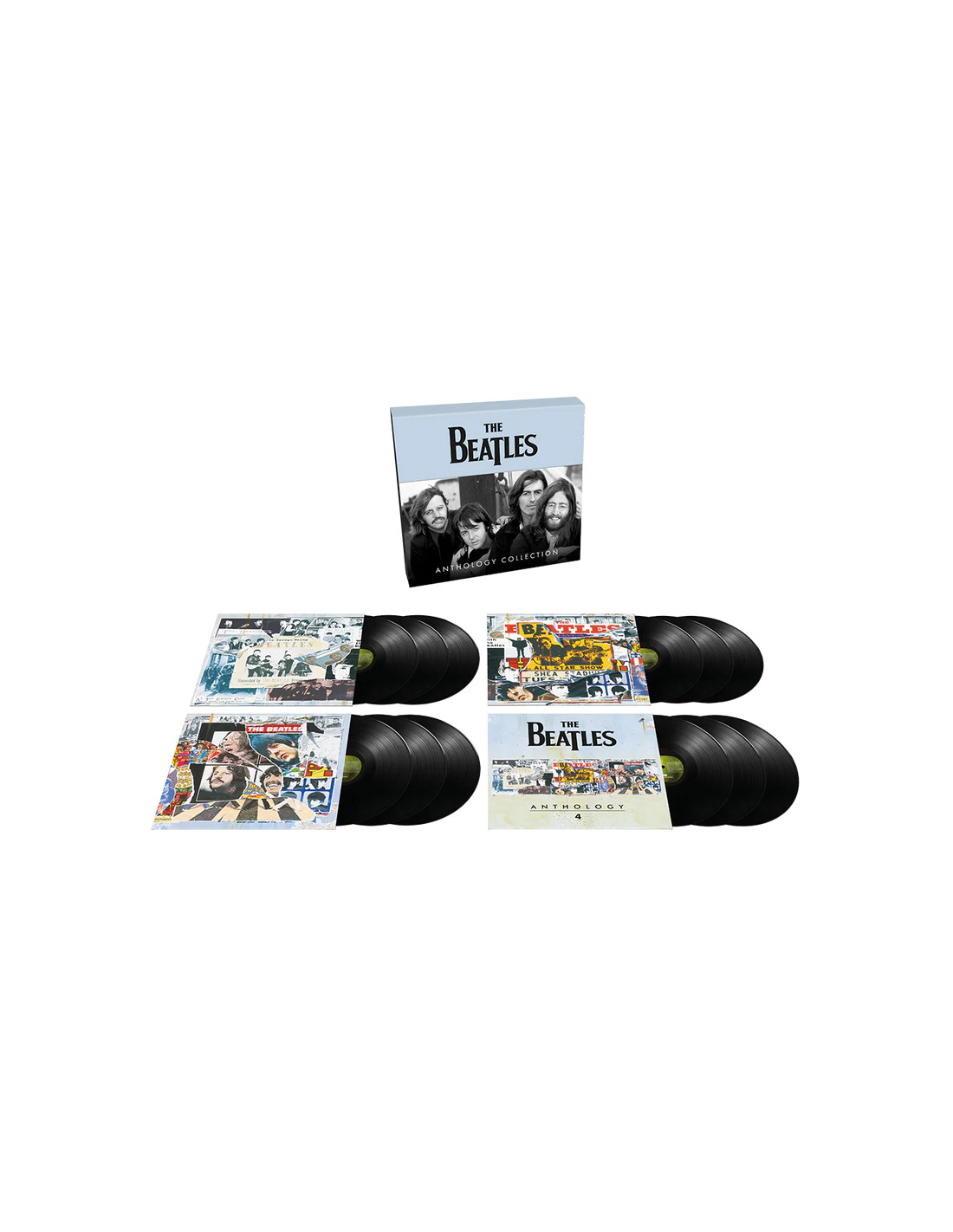 Pressed on 180g black vinyl, each 3LP album will be housed within a triple gatefold sleeve, featuring the original art, sleeve notes by Mark Lewisohn, and restored photos for Anthology 1-3; Anthology 4 has brand new sleeve notes written by Kevin Howlett alongside photos. The outer slipcase features the original Klaus Voorman triptych art, and a 3/4 O-Card image of the band with detailed track listing.