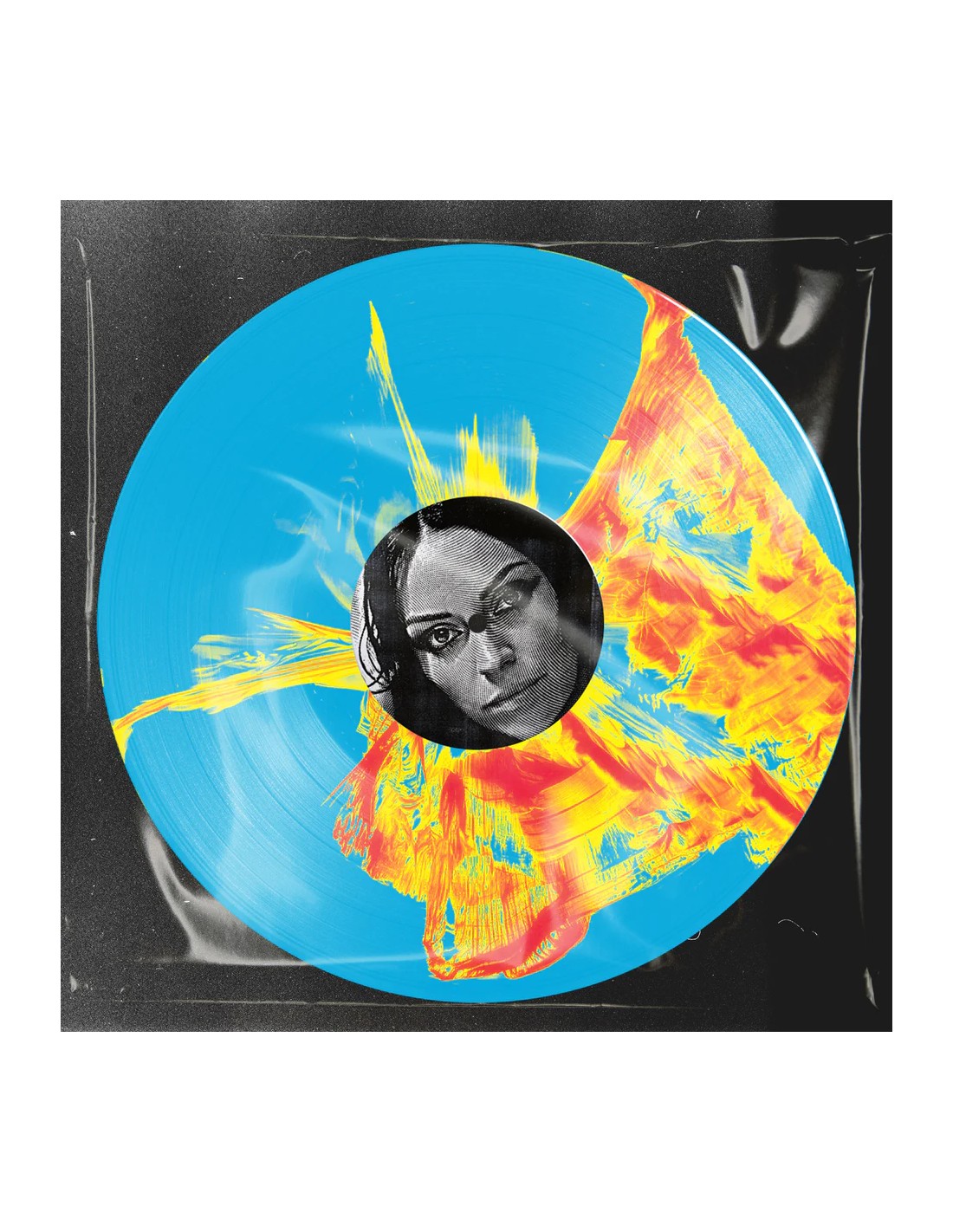 Blue, red and yellow ecoformat inkplosion 12” vinyl featuring four never before heard remixes of single 'Can You Hear Me?'