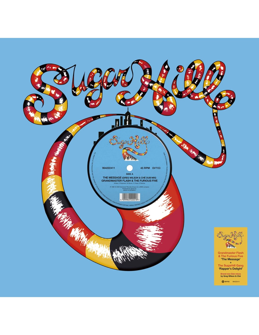 Two stone-cold hip hop greats brought together on vinyl for the very first time. This special 12" release features the Dub mixes of 'Rapper's Delight' and 'The Message' on limited edition colour vinyl.